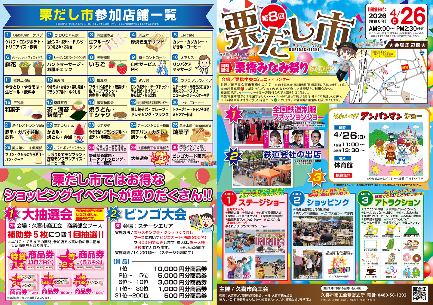 ◎会場への入場は、9:00(予定)になります。開場前に(8:30頃より)、主催者側で久喜市商工会限定・栗橋みなみ及び鉄道会社各商品購入列を作ります。