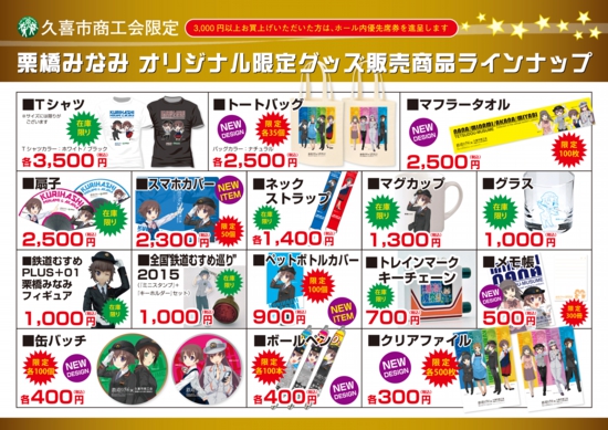 第7回 栗橋みなみ夏まつりで販売される栗橋みなみオリジナルグッズの商品ラインナップです。