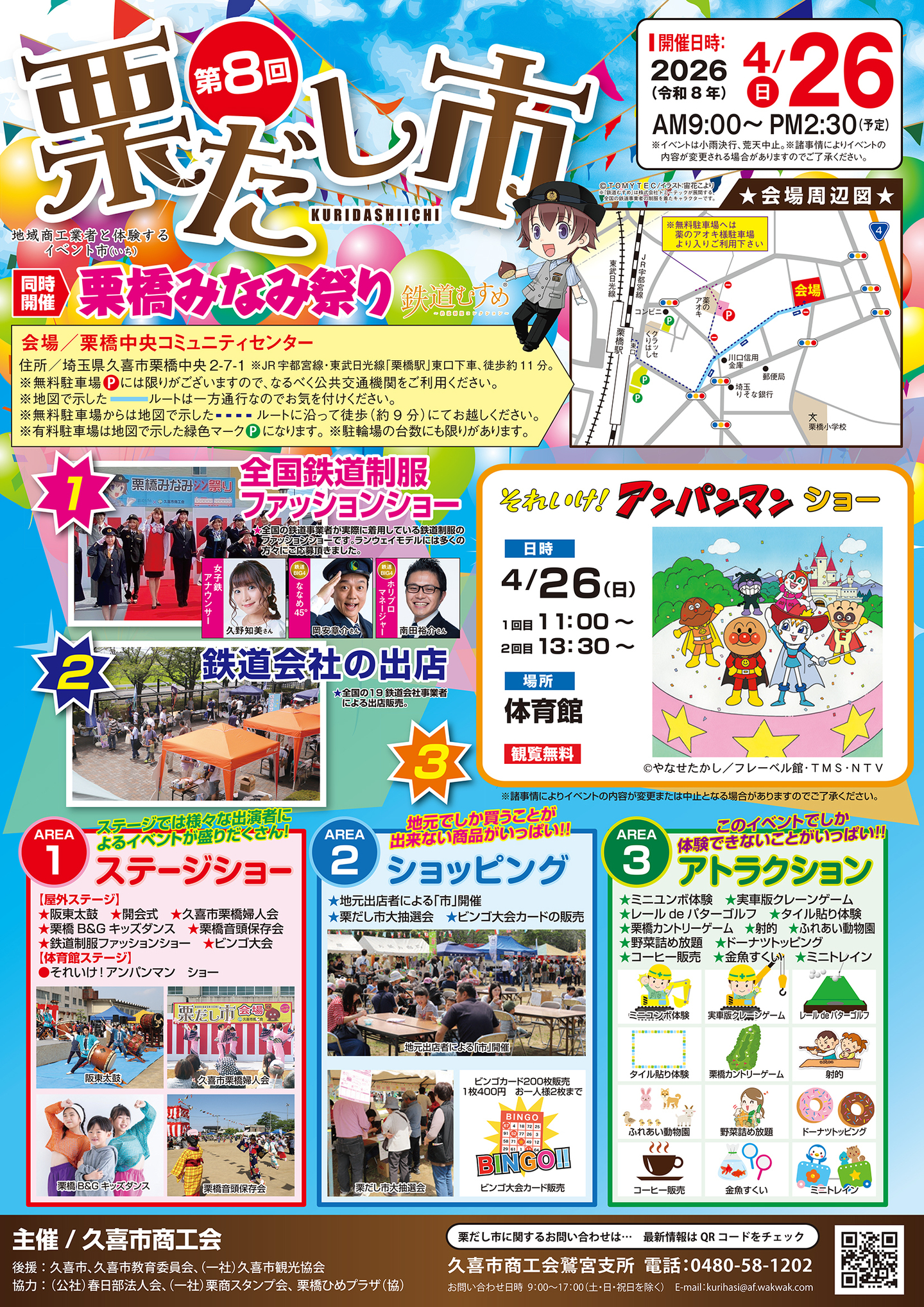 ◎会場への入場は、9:00(予定)になります。開場前に(8:30頃より)、主催者側で久喜市商工会限定・栗橋みなみ及び鉄道会社各商品購入列を作ります。
