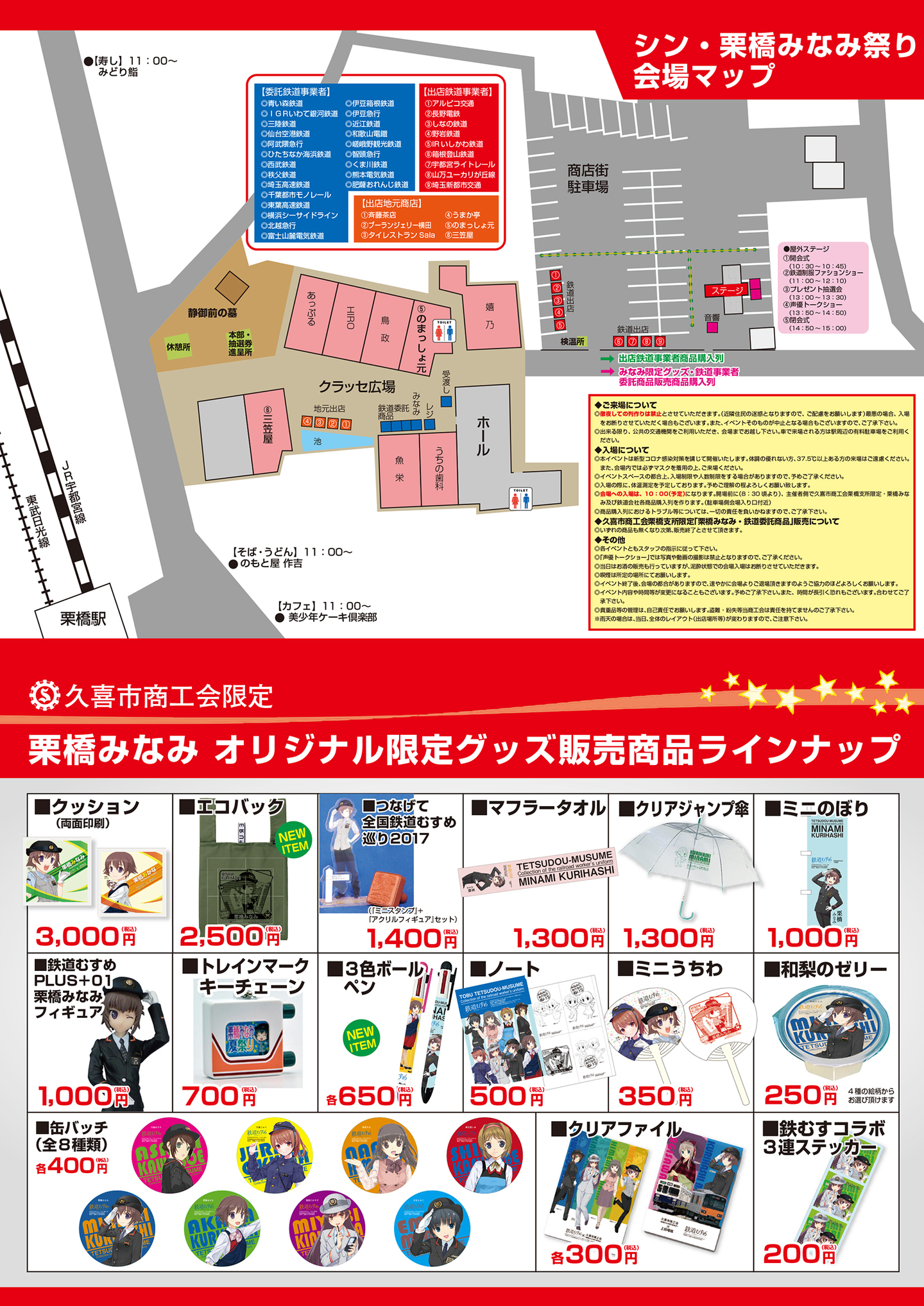 ◎会場への入場は、10:00(予定)になります。開場前に(8:30頃より)、主催者側で久喜市商工会栗橋支所限定・栗橋みなみ及び鉄道会社各商品購入列を作ります。(駐車場側会場入り口付近)